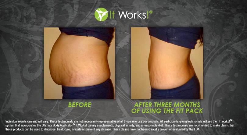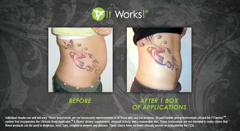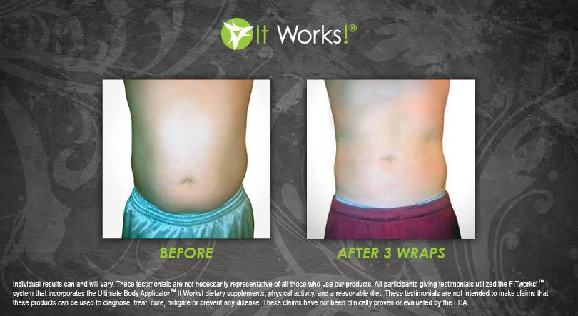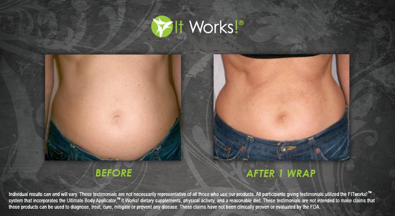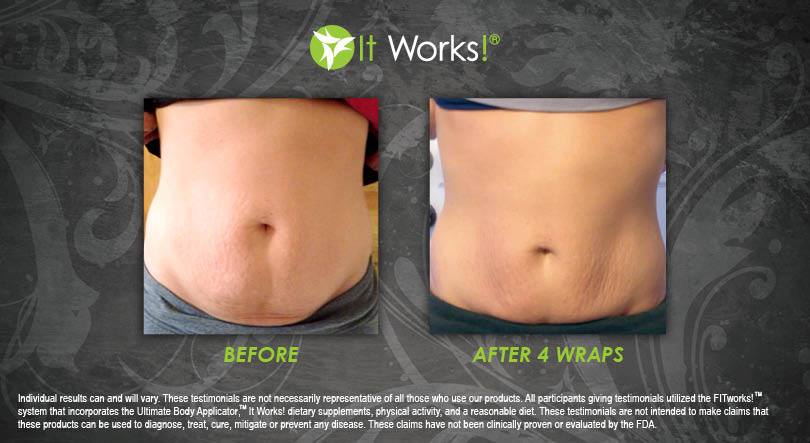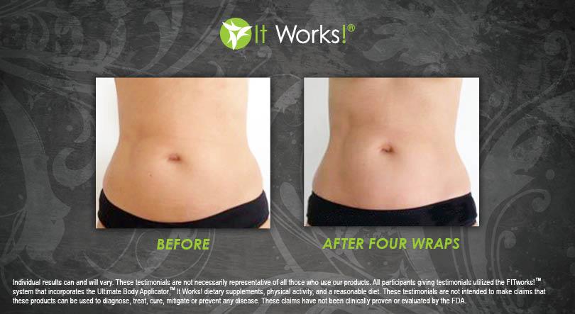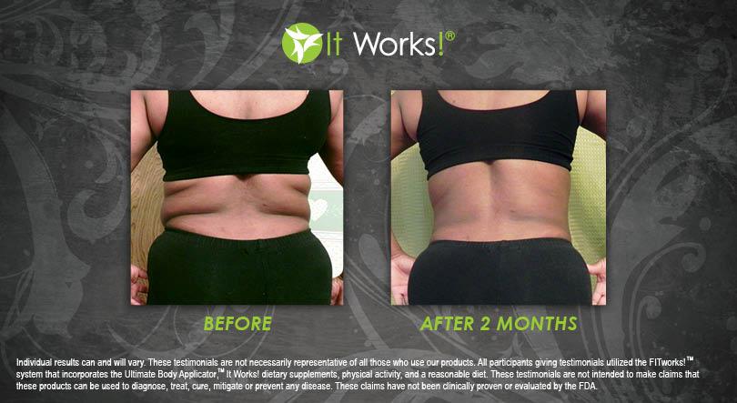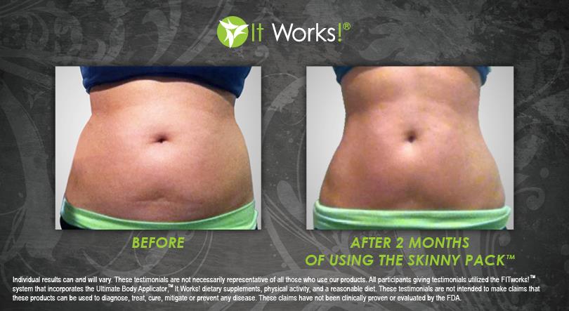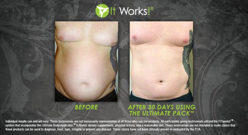 Individual results may vary. These Testimonials are not necessarily representative of all those who use our products. All participants giving testimonials utilized the It Works! Global System that incorporates the Ultimate Body Applicator, It Works! Global dietary supplements, physical activity, and reasonable diet. These testimonials are not intended to make any claims that these products can be used to diagnose, treat, cure, mitigate or prevent any disease. No claims have been proven or evaluated by the FDA.