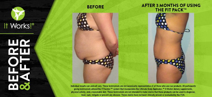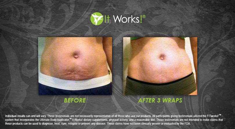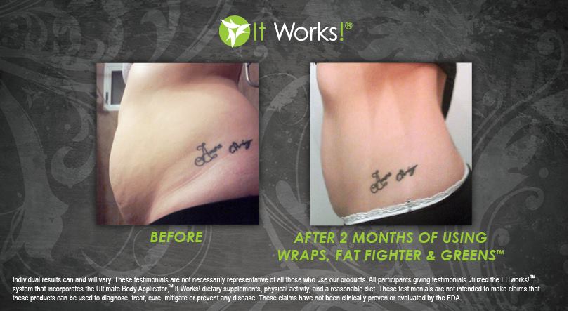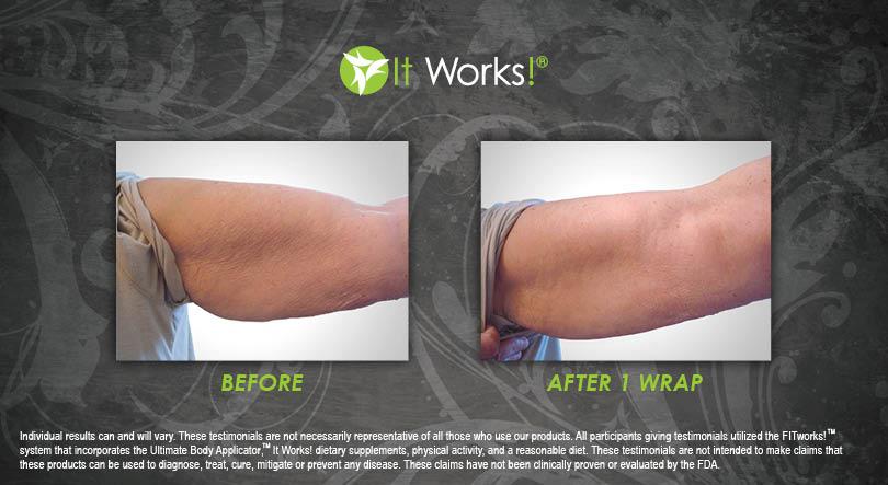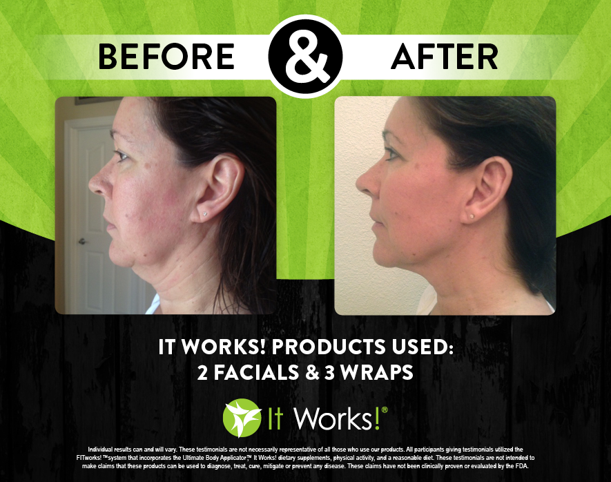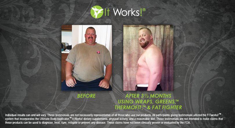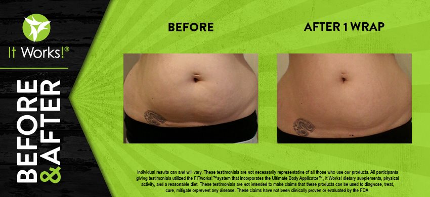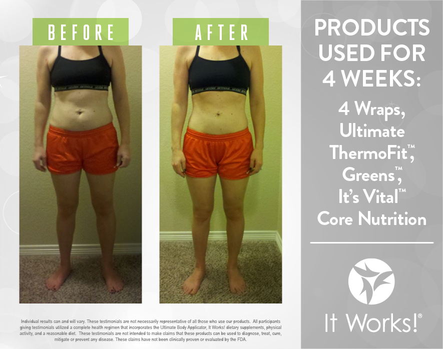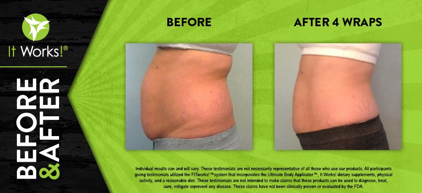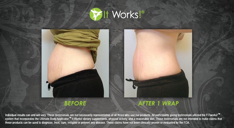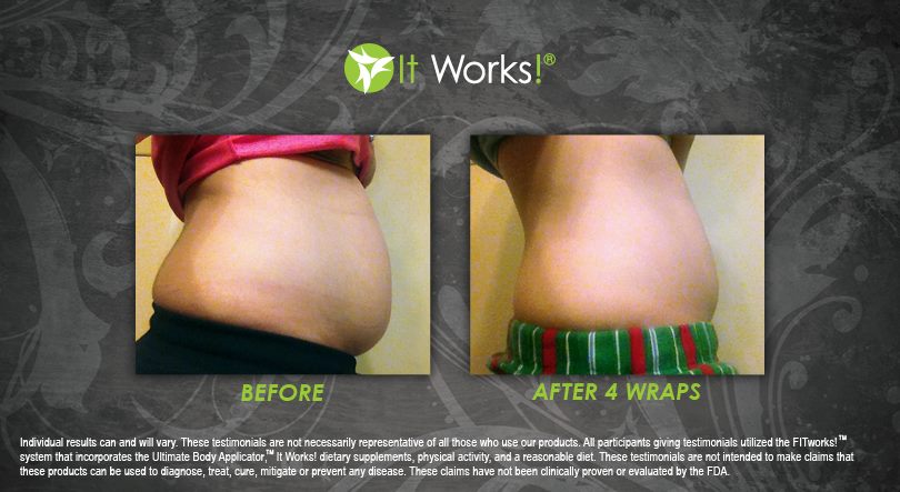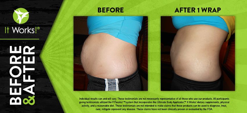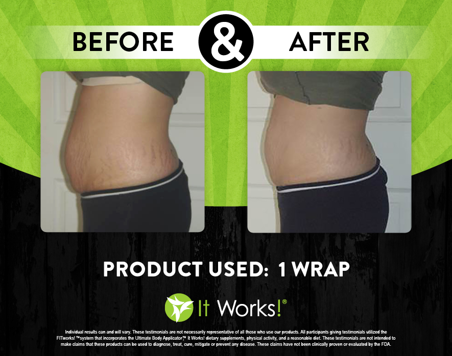 Individual results may vary. These Testimonials are not necessarily representative of all those who use our products. All participants giving testimonials utilized the It Works! Global System that incorporates the Ultimate Body Applicator, It Works! Global dietary supplements, physical activity, and reasonable diet. These testimonials are not intended to make any claims that these products can be used to diagnose, treat, cure, mitigate or prevent any disease. No claims have been proven or evaluated by the FDA.